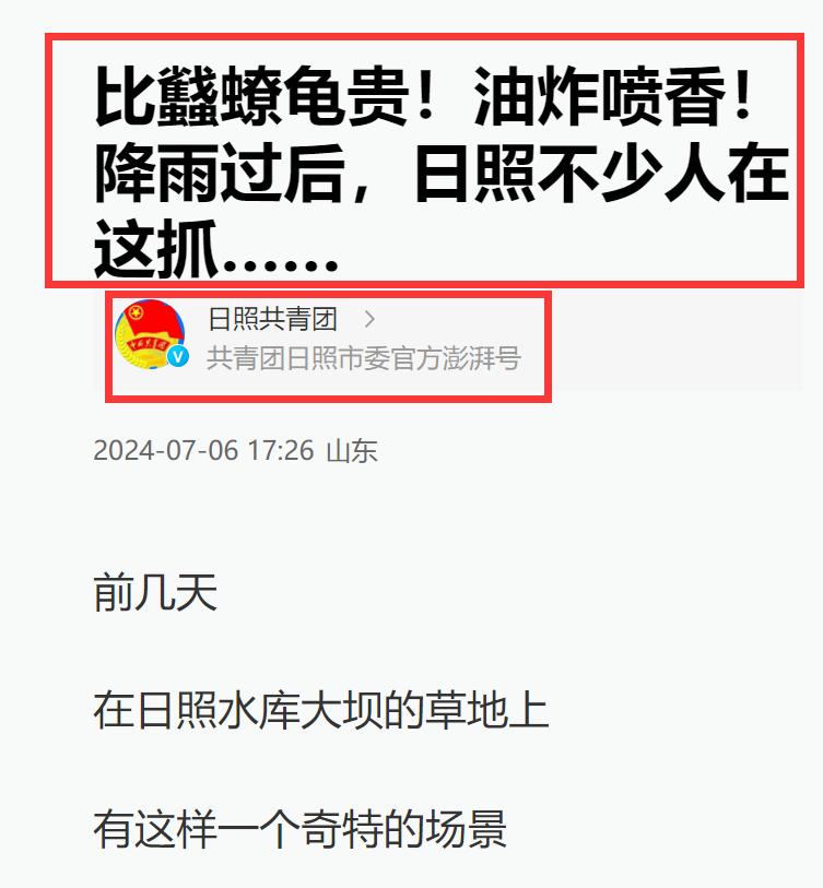 澎湃新闻:《比蠽蟟龟贵!油炸喷香!降雨过后,日照不少人在这抓……》 2024-07-06
