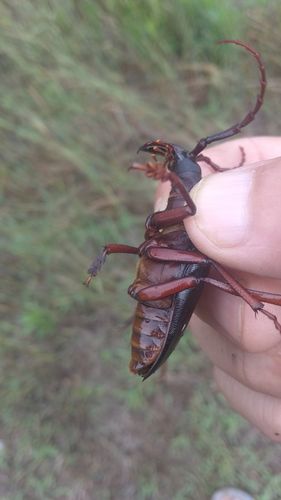 至于这么霸气的天牛为什么会被称为“山水牛”,是因为这种虫子把卵产到地下,每当下雨的时候,虫卵会浮上水面孵化,因此它们才得名山水牛。
