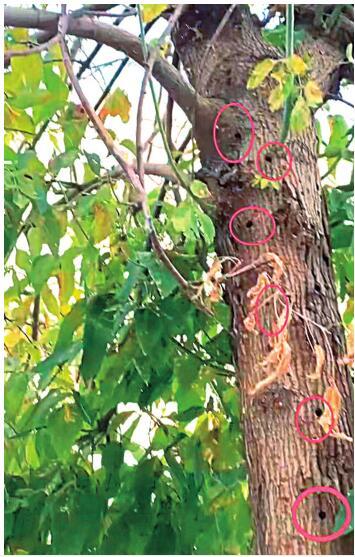 而且山水牛在成虫之后,更是会啃食嫩枝皮,破坏树木运送营养的疏导组织,进而影响植株整体的生长。