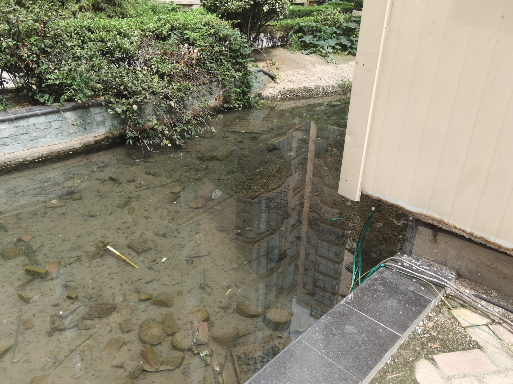 疑问3:事发景观水系旁的水系池里,物业之前安装很多充电桩?