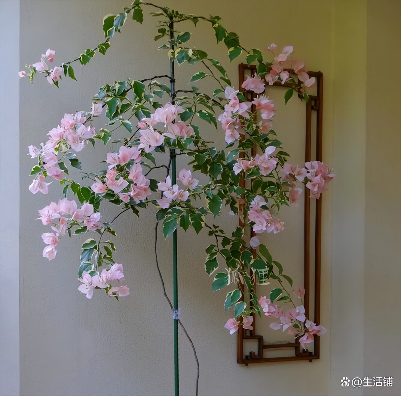 所以修剪和蟠扎是塑造三角梅造型的重要步骤。可以根据整体造型的需要来摘掉多余的叶子、适当剪去拥挤的枝条。如果想打造飘枝的话,可以暂时不要修剪,让枝条肆意疯长一下,然后顺势长成理想造型。