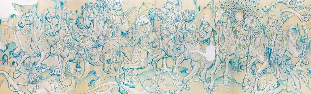 艺术家简明(James Jean)从前是商业画家,在2008年转做纯艺术创作之前,他曾为美国DC漫画描绘过多本封面,近年也为诸如《瞬息全宇宙》这样异想天开的电影制作海报。在20多岁刚开始做商业艺术创作时,他不得不往返于纽约的各大公共图书馆收集图片资料作为参考。但如今,艺术家和设计师显然不用再如此费劲地一次次踏入图书馆的大门,在线图库便捷地替代了这个过程。与不加预设地浏览图片、获取灵感的过程不同的是,简明认为ChatGPT能在创作者已经知道自己想要什么时帮忙演绎灵感,例如在自己已经完成绘画创作、需要为作品写一段文字描述的时候。