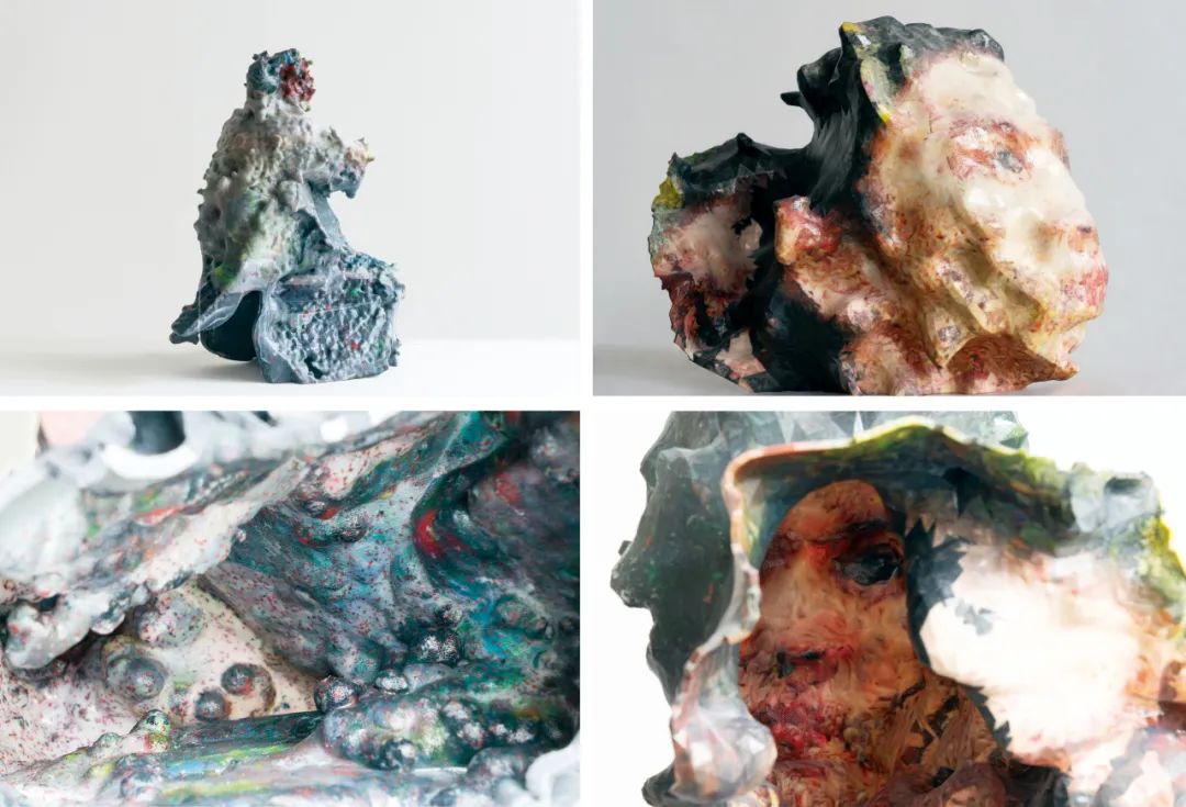 郭城在2016年和2017年的“静物雕塑”“静物面具”两个作品中,使用了早期AIGC算法Google Deepdream来讨论创作者的主体性问题,即当AI作为创作者时,所有被观察的客体都可被看作非人的静物。