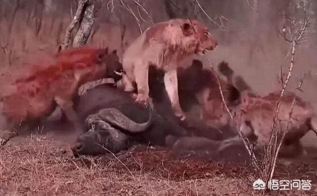 当然,这样也仅仅能对抗雌狮,如果雄狮来了,鬣狗只有跑路的份了,雌狮会帮老公护住菊花,而雄狮的凶猛一击,就可以杀死一只鬣狗。