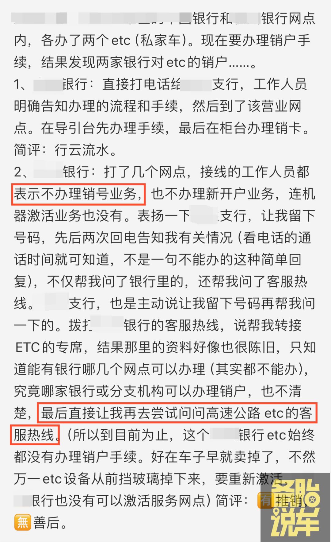 有些银行的工作人员直接说:我们这里没有销号业务的,建议您去找高速ETC客服问一下。