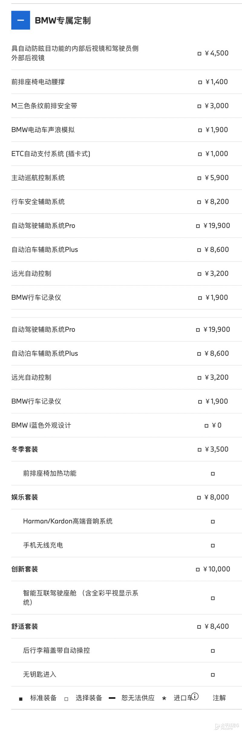 宝马i3作为一台中型纯电轿车,指导价是34.99万元,比同期推出的宝马i4的44.99万元指导价少了整整10万元人民币,让豪华品牌纯电动轿车的价格区间进一步下探。然而,大部分豪华,舒适性配置在i3上通通需要再各花八千到两万元不等进行选装,比如19英寸的轮圈就需要花费14300元,有朋友调侃说买i3就像买了个“毛坯房”。