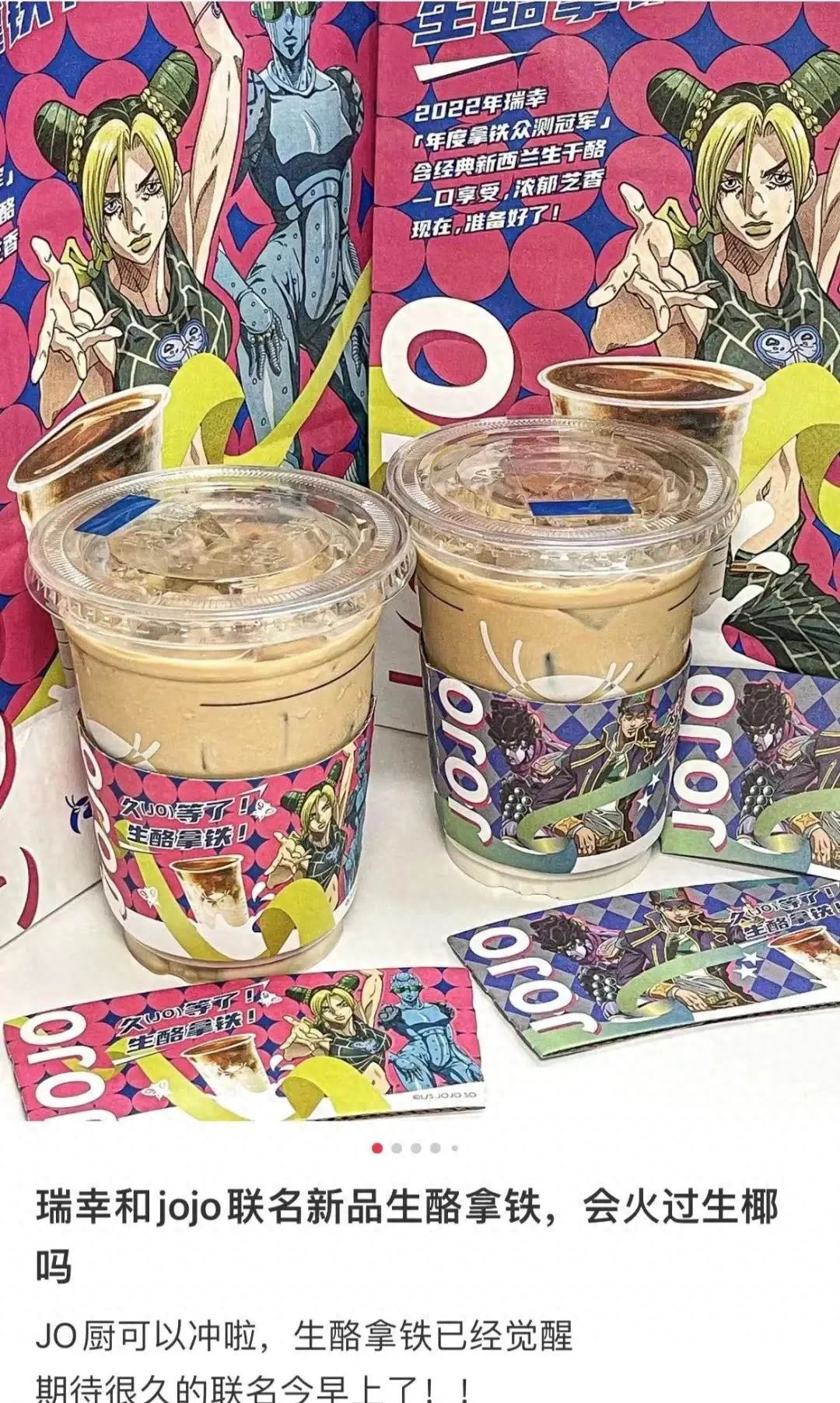 此外,在全国上新时,瑞幸并不满足于产品风味、口感的打造,更是与高人气动漫《JOJO的奇妙冒险 石之海》进行联名,并推出联名杯套和纸袋,该消息一经发布便火爆网络,引发了二次元狂热粉丝狂欢,评论区迅速被粉丝留言给淹没……