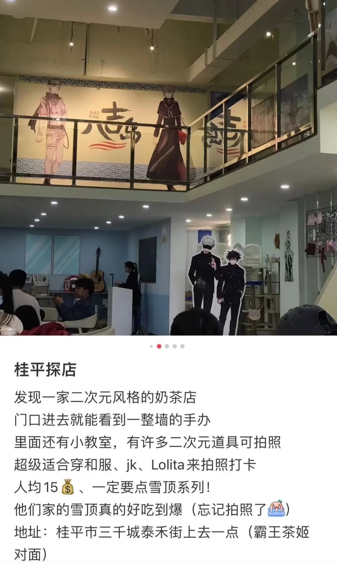 在社交媒体上搜索关键词二次元,你会发现各种各样的二次元奶茶店正在不断涌现,或在装修上体现动漫特色,或在门店招牌、产品中添置丰富的二次元元素,不同于精致的“第三空间”,“动漫空间”的营造则拥有更多的拍照打卡属性。
