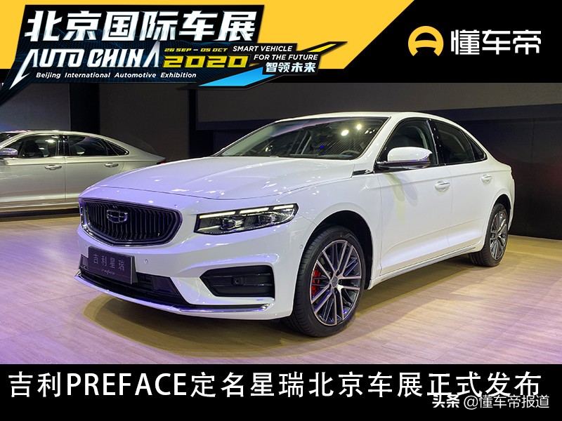 [懂车帝原创 2020北京车展] 在2020北京车展上,吉利PREFACE正式发布,同时也公布了其中文名称为吉利“星瑞”。星瑞是吉利品牌基于CMA架构打造的首款轿车,并定位为帝豪GL与吉利博瑞之间。