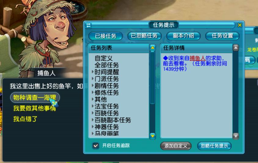 点击任务,都是一些跑地图找NPC对话,和简单的战斗。