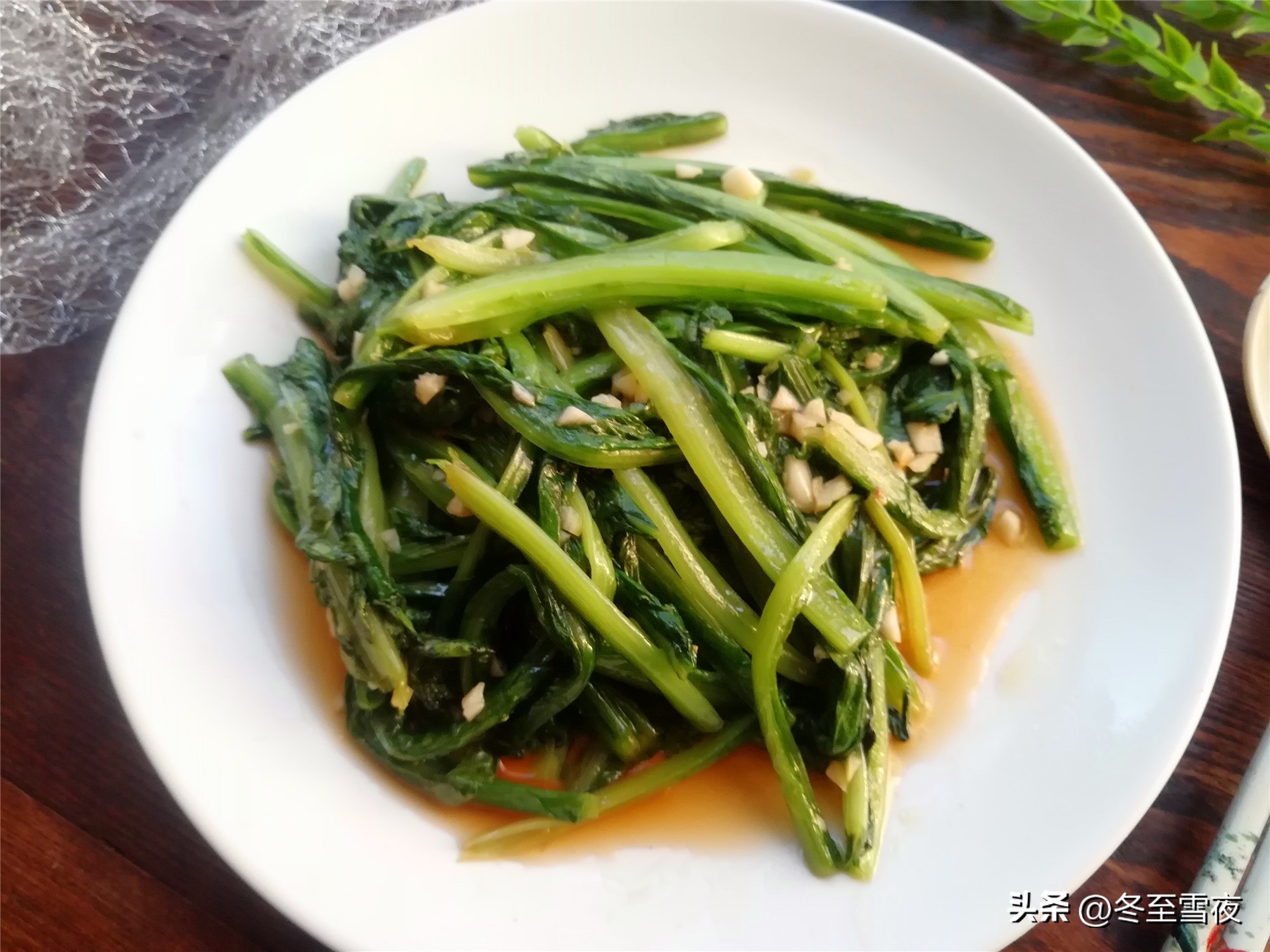 【白灼油麦菜】所需材料:油麦菜500克、油盐适量、干辣椒4-5个、大蒜3瓣、蒸鱼豉油3汤匙、