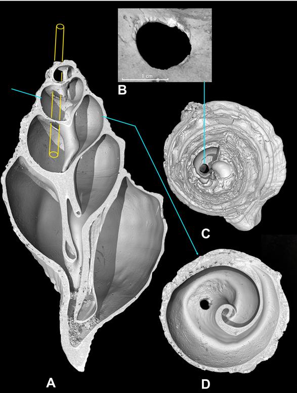 通过CT对海螺扫描后,他们还真发现了一些人造痕迹。