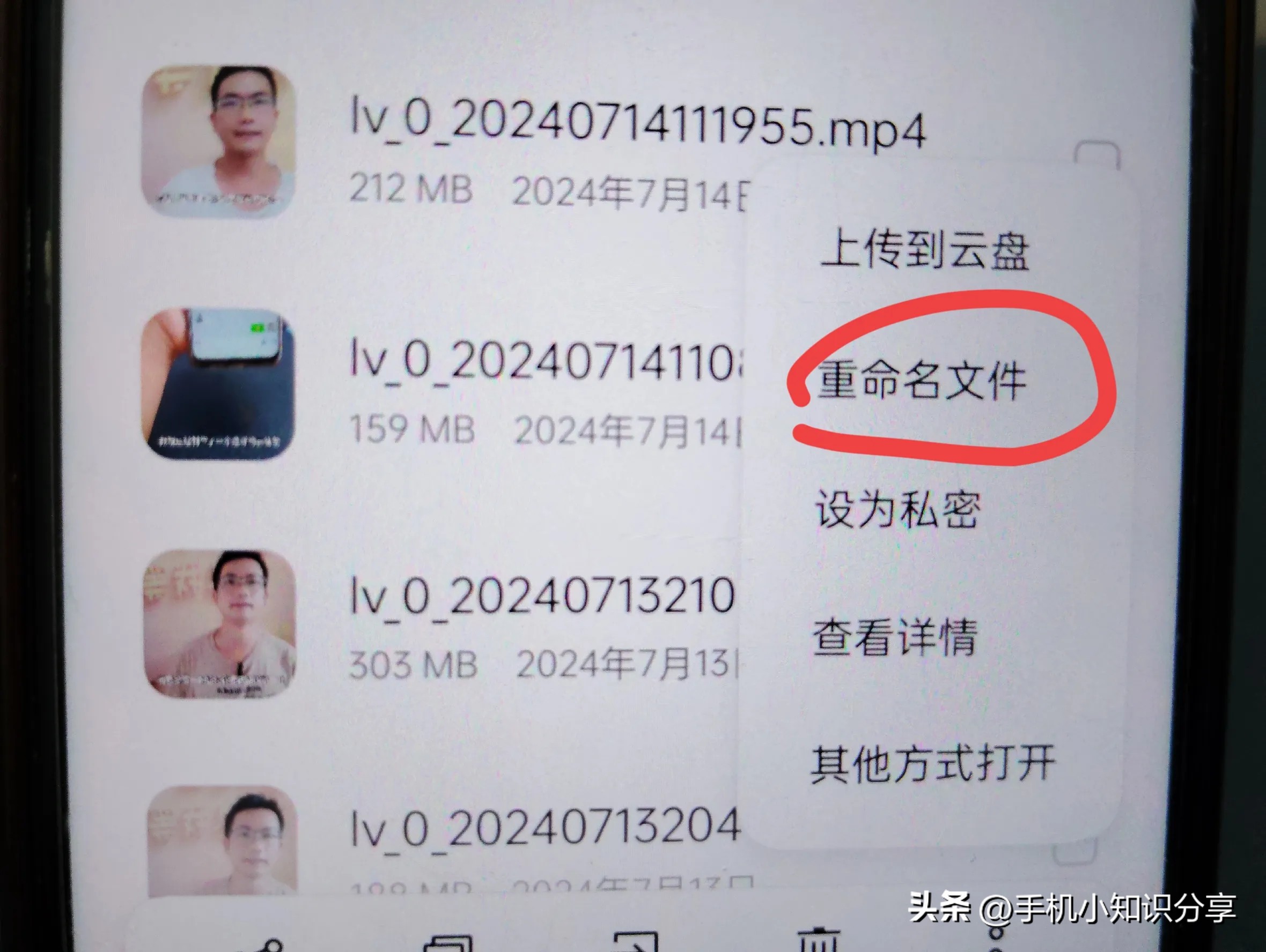 蓝色部分文件不用管,后面显示的是 MP4,MP4 是视频格式。由于电话铃声不能用视频,所以把 4 删除,改为 3,这样视频就能变成音频文件保存下来。(如上图所示)