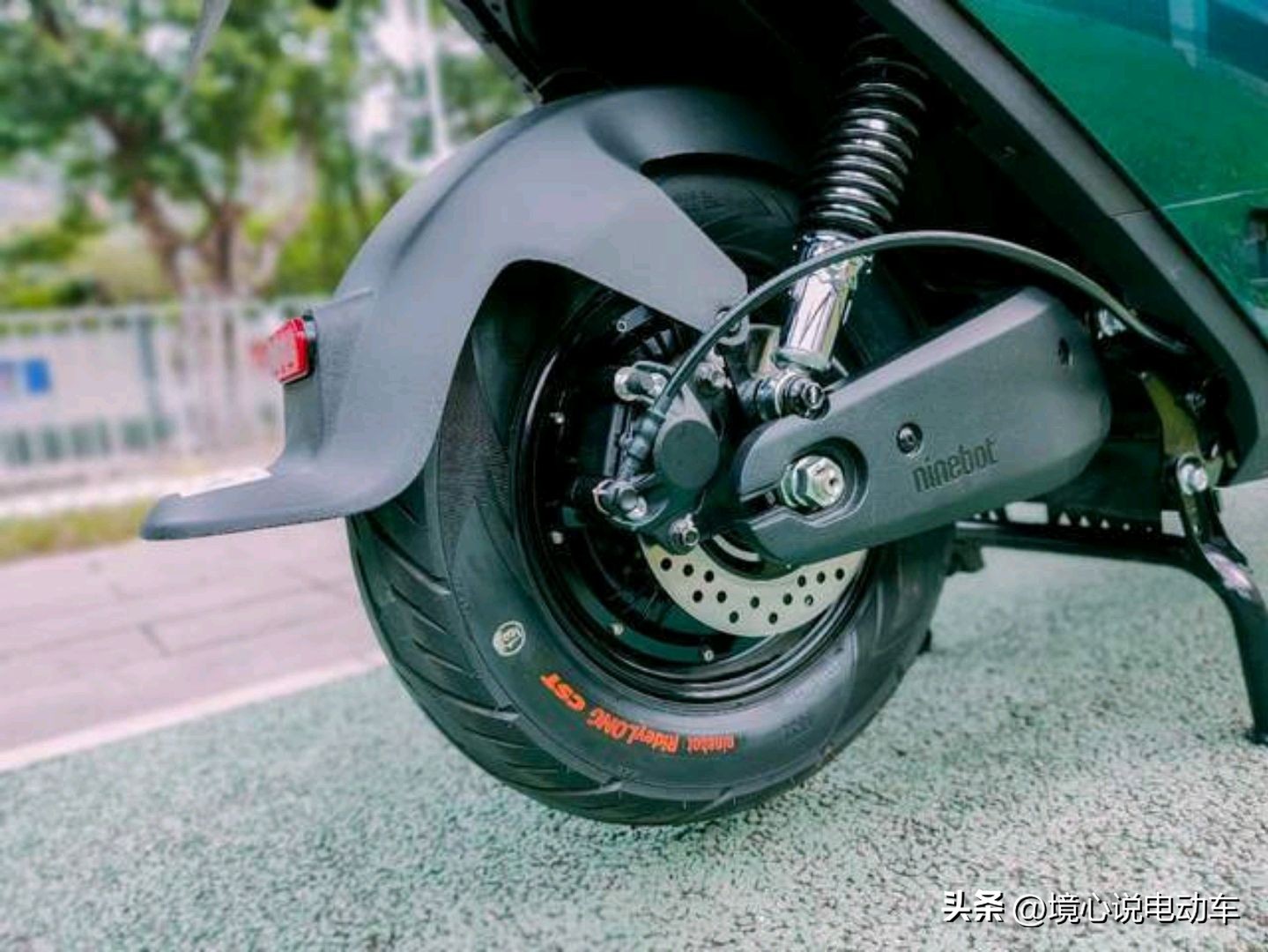 轮胎规格:后轮为3.5-10真空胎,前轮为80/90-12真空胎,后小前大的设计能够让轮胎拥有较强的抓地力。