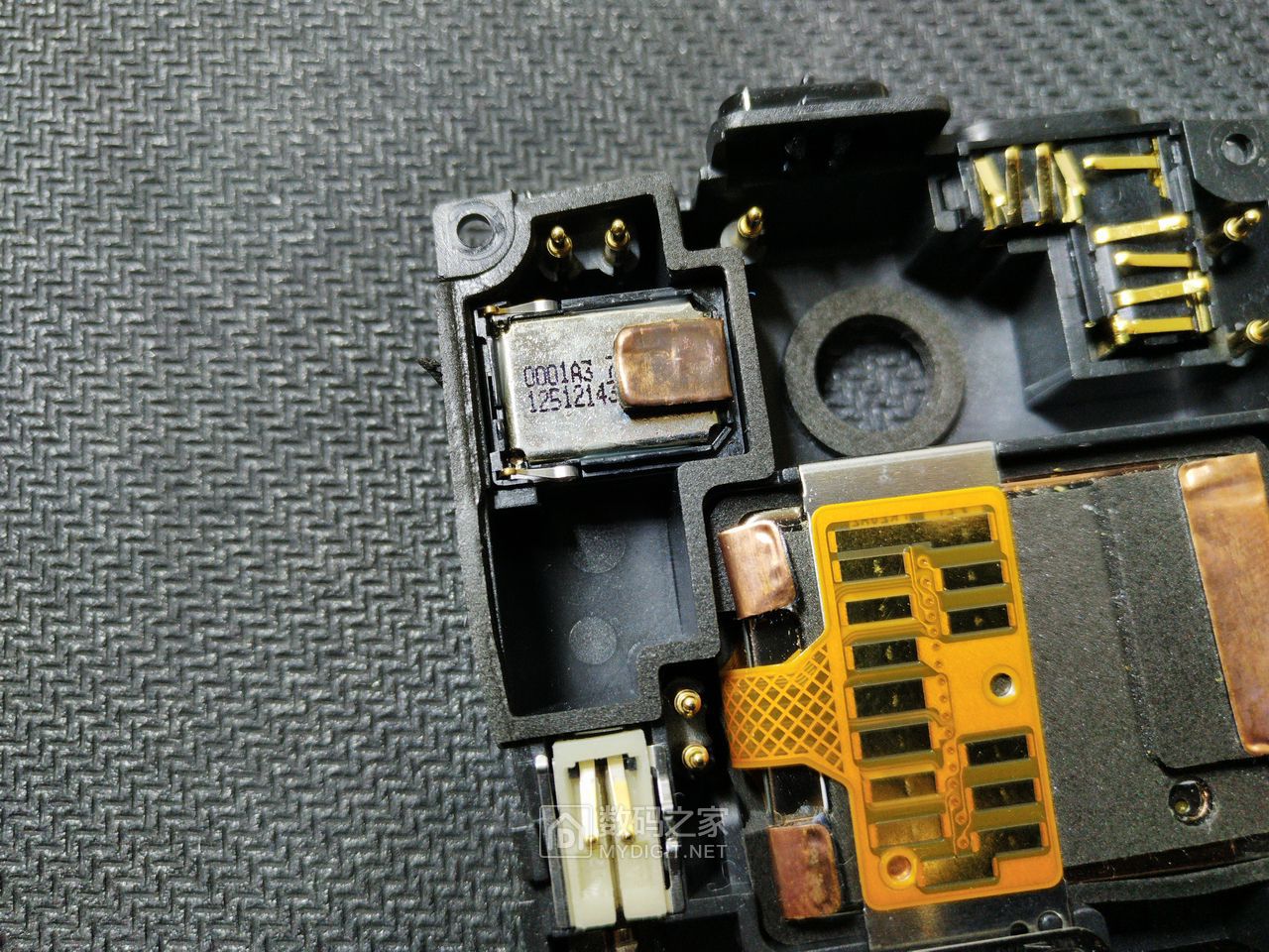 成功分离中壳,主要的附件,包括外放喇叭、硬盘、振动马达等都在中壳上,通过触点的形式与主板连接。