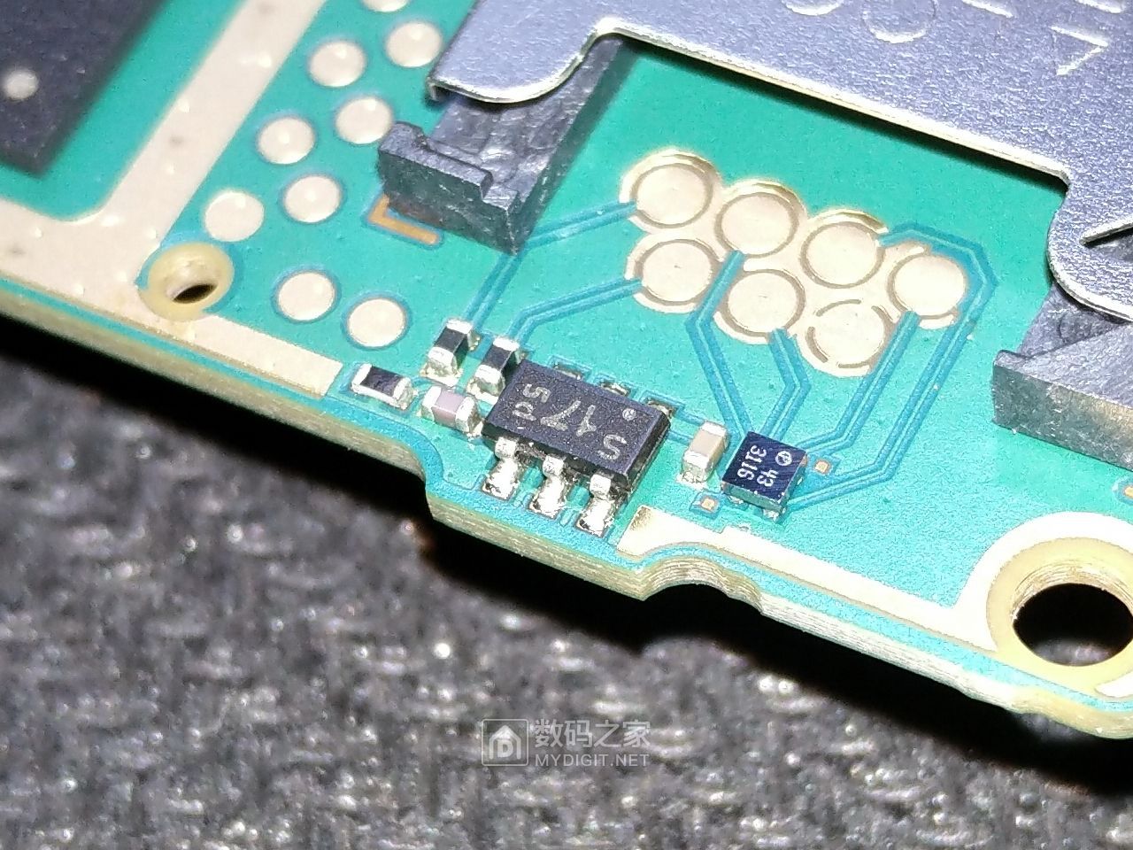 另一颗霍尔开关,位于SIM卡座旁边,用于检测后盖开启,如果在开机状态下打开后盖,系统会强行关闭硬盘并在屏幕上弹出警告。