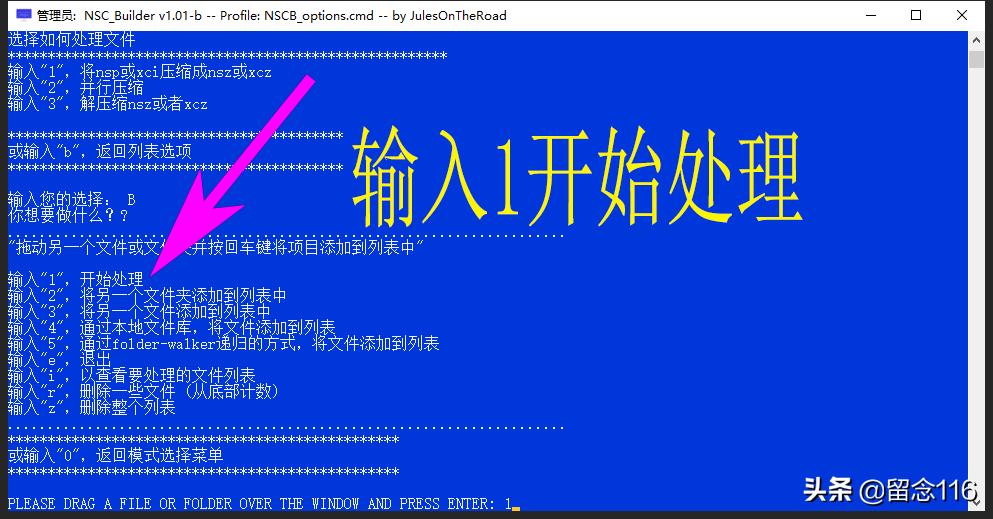 5.键盘输入3解压缩NSZ并回车,就可以看到下图进度条。