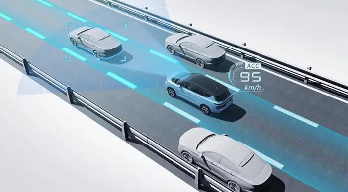 ACC自适应巡航系统通过前视摄像头和毫米波雷达对前方车辆实现跟车(0-180km/h),并且带有Stop&Go自动跟车功能。对比定速巡航,这套配置的使用场景更丰富,可以做到前面的车走我就走,前面的车停我就停。