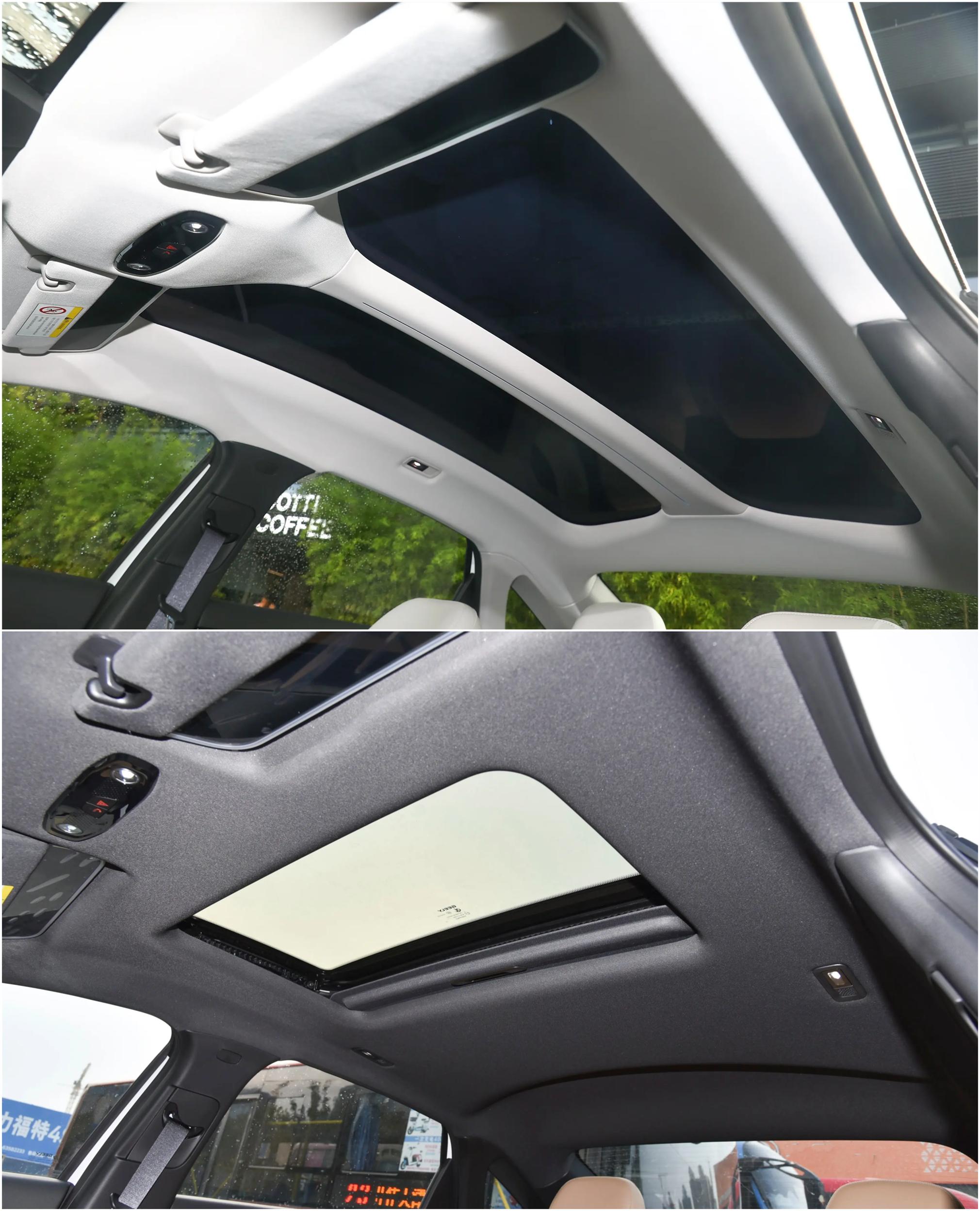 顶配(星舰)配备穹顶天幕,带镀银+LOW-E 技术,可遮光隔热,入门(60km AIR)没有天窗,其他车型配备小天窗,其中次顶配(MAX)可选装穹顶天幕。