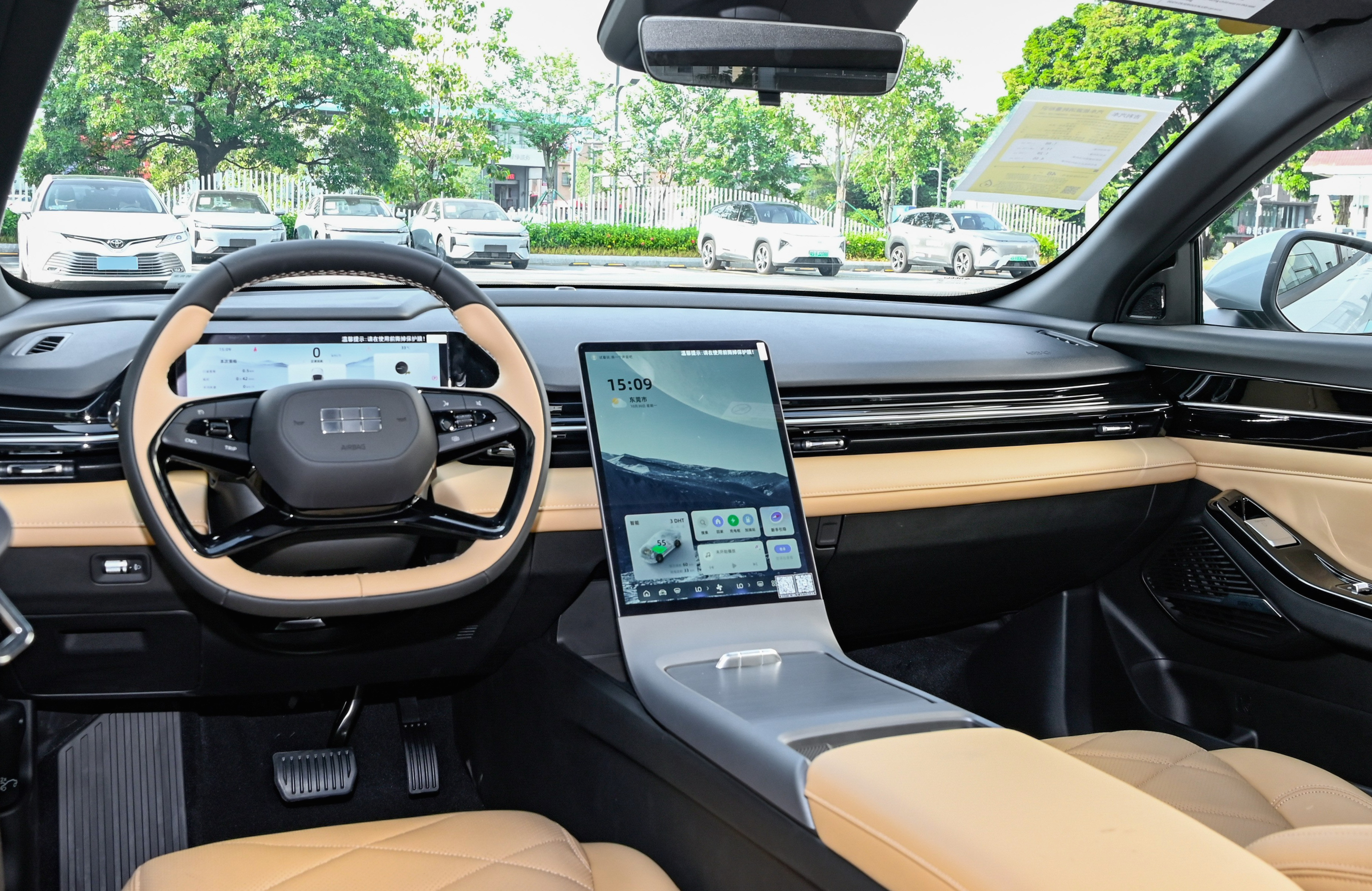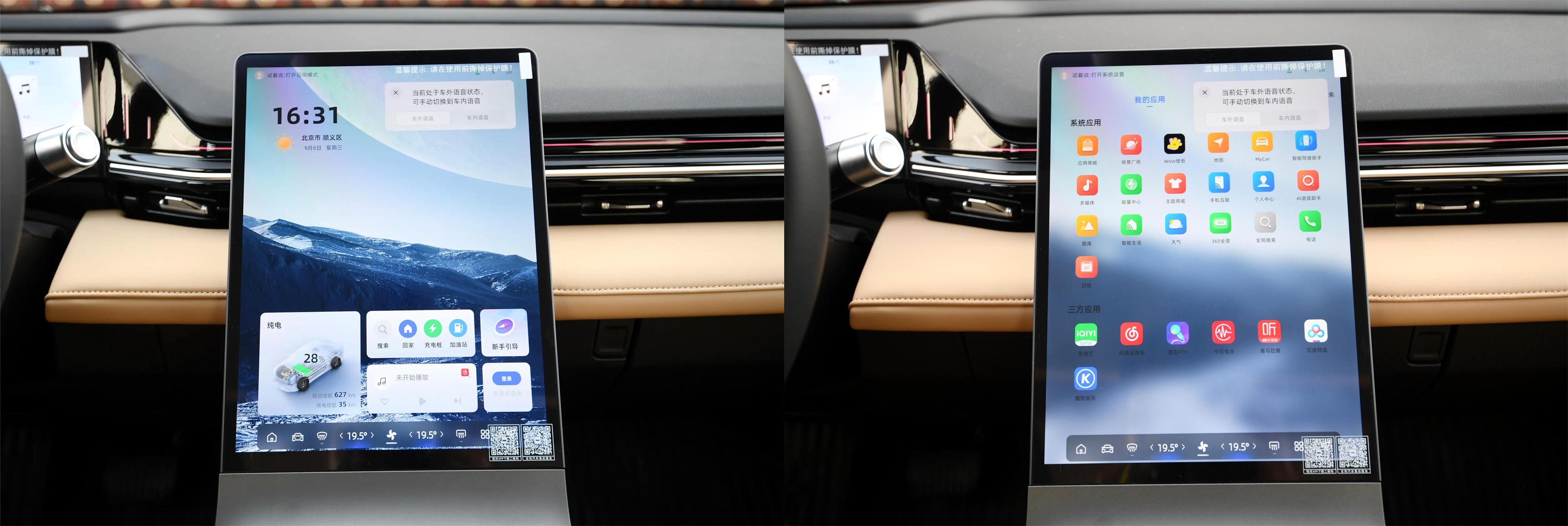 全系配备10.25英寸液晶仪表和13.2英寸高清中控竖屏,车机内置高通骁龙8155芯片,搭载全栈自研银河N OS系统,支持4G网络+车载Wi-Fi、OTA软件升级、手机APP远程控制、双音区智能语音交互系统以及在线音视频娱乐App,这块竖屏还支持快捷手势,比如双指滑动、三指滑动和五指捏合等。