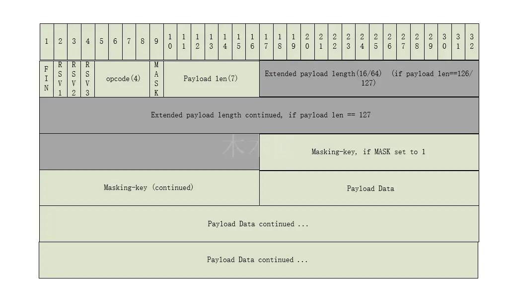 - WebSocket 中的掩码是为了防止早期版本中存在中间缓存污染攻击等问题而设置的,客户端向服务端发送数据需要掩码,服务端向客户端发送数据不需要掩码。