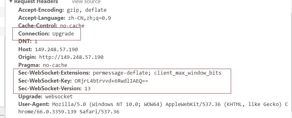 复制代码根据 RFC6455 协议规定 WebSocket 只需要一次握手就可以完成,所以我们只需要分析第二次的http 握手请求,A请求应该是使用的框架层面自己实现。