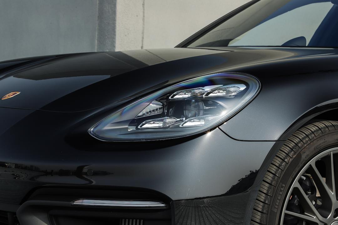 灯组内部采用远近光一体式设计,四点式LED日间行车灯是保时捷的经典设计元素。在行政加长铂金版车型上,带有保时捷动态照明系统(PDLS)的LED大灯组已成为标配,不用再额外花钱选装了。
