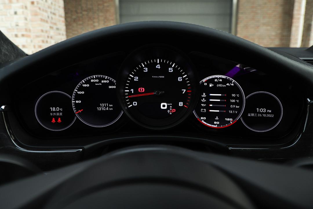 内饰座舱传递出浓郁的保时捷家族特征,T型中控台搭配精密的按键布局让内饰风格向跑车看齐,机械表盘与大面积的黑色触控面板相辅相成,将诸多经典与科技的元素相互融合,是保时捷对于豪华的另一种诠释。相比之下,Sport Chrono 组件的缺失我认为是个不小的遗憾,在购车时强烈建议选装。