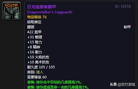 猎人不缺命中,要强补命中,也有废墟的职业披风“隐秘通途披风”,敏捷还高1点,声望到崇敬可换,用不着和战士、盗贼抢它。