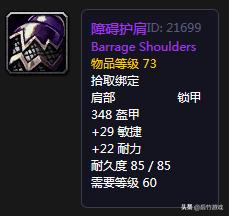 老一的锁甲肩膀,主打高敏,可惜不加命中,副本内的表现不如T1和T2肩膀。如果主力PVP或者打钱,这个肩膀可以入,而且基本就是低价拿到。
