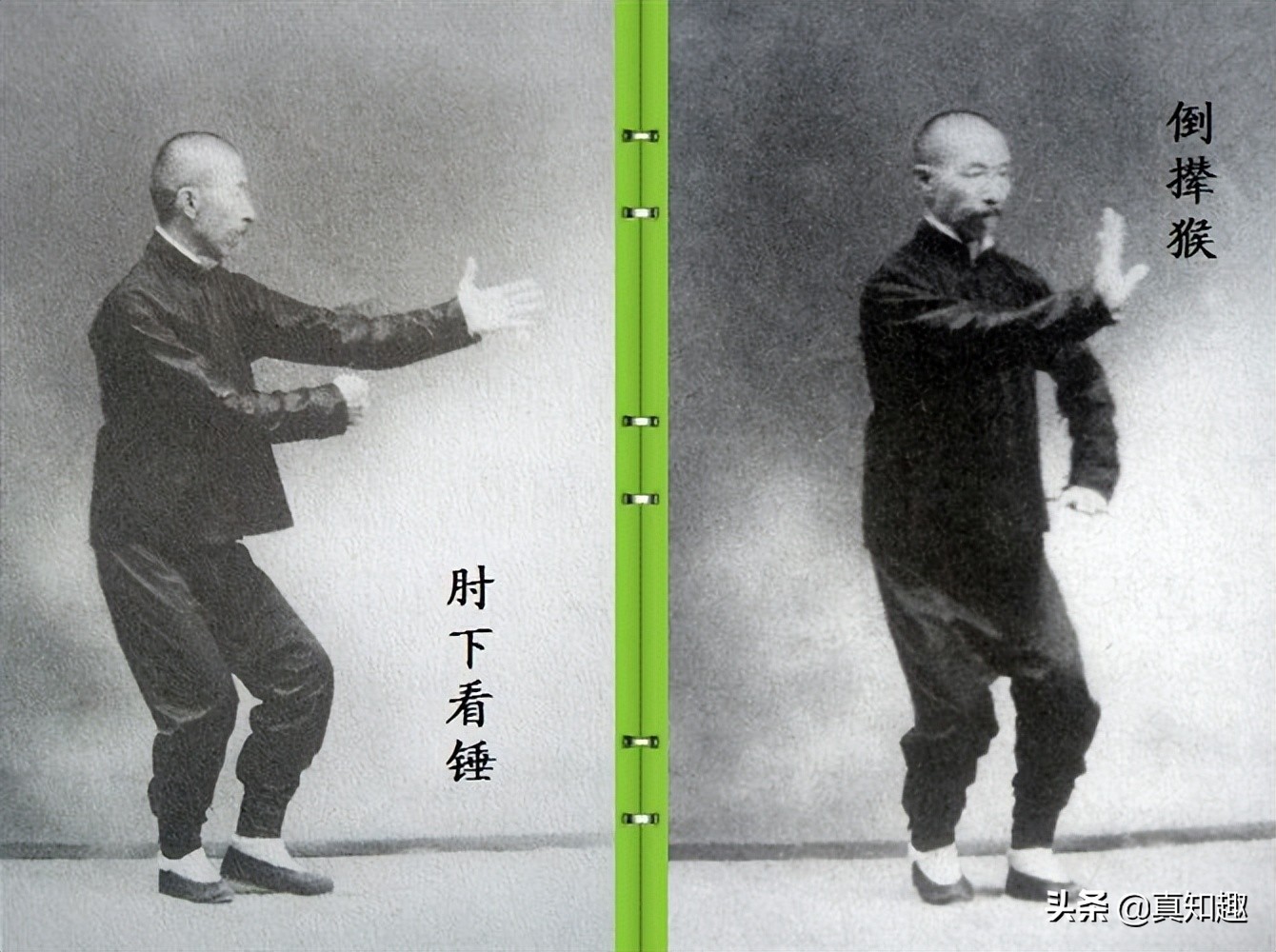 手形与劲力,食指与拇指撑开、食指向上挑住劲儿,指尖微扣,拇指与食指虎口撑圆、指尖微微向里扣住劲儿,其它三指均向里扣劲,这里特别应指出的是:大指与小指这时也是向外撑的劲儿,这样,大指、小指与食指、三指之间形成一个很圆的劲儿,然后手腕极力立起(书中手腕是不立的,但晚年改为立掌),塌住劲,也叫塌腕,手的大指一侧向外拧劲,手心向回缩劲,这时,塌、拧、扣、挑、缩、五劲齐全。