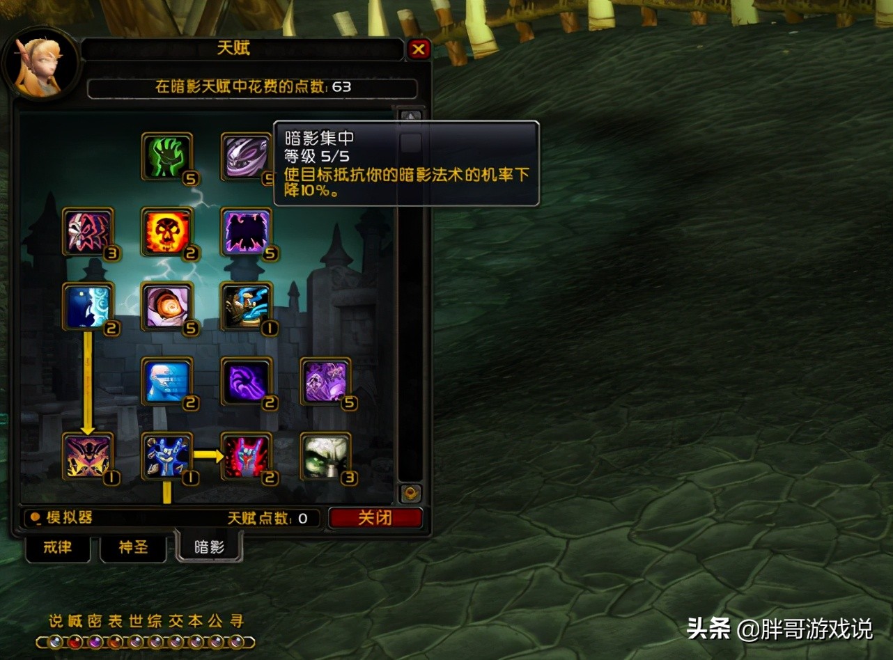 暗牧的天赋暗影集中自带10%的命中,也就只需要6%的命中,76点命中等级就达到了命中上限。