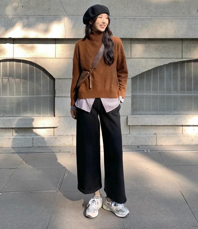 冬日里又有谁会对暖暖的焦糖色产生抵抗力呢?这么一个颜色穿起来整个人都会变得暖暖的。焦糖色阔腿裤,在搭配上也有着更多可能性,宽度适中的版型,穿起来不仅藏肉还显瘦!