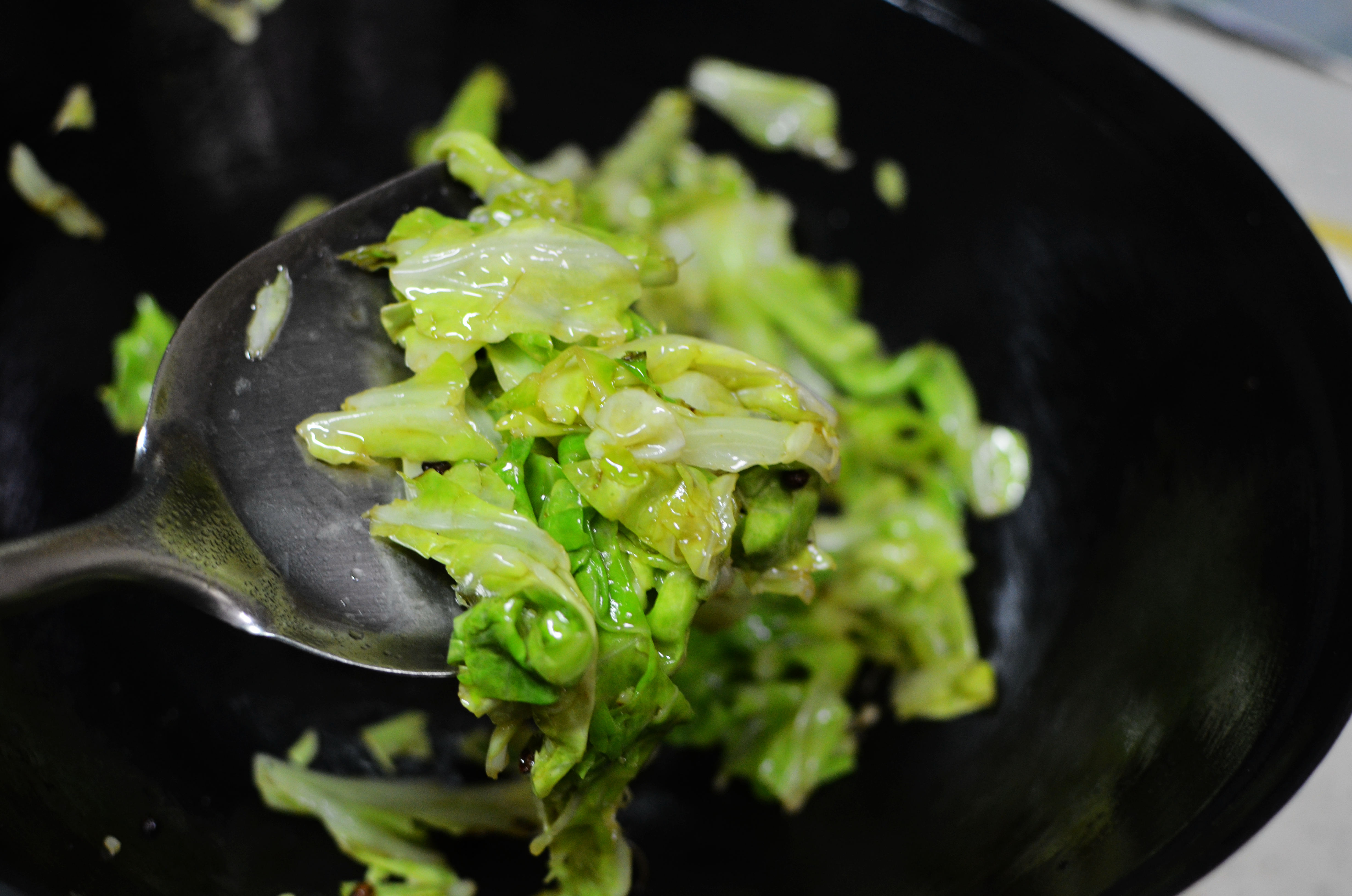 上述工作做完后,把油倒掉,然后再炒一个菜,当然这个菜不能吃,目的就是洗锅,我简单炒了个卷心菜,最近菜价贵没敢用别的。