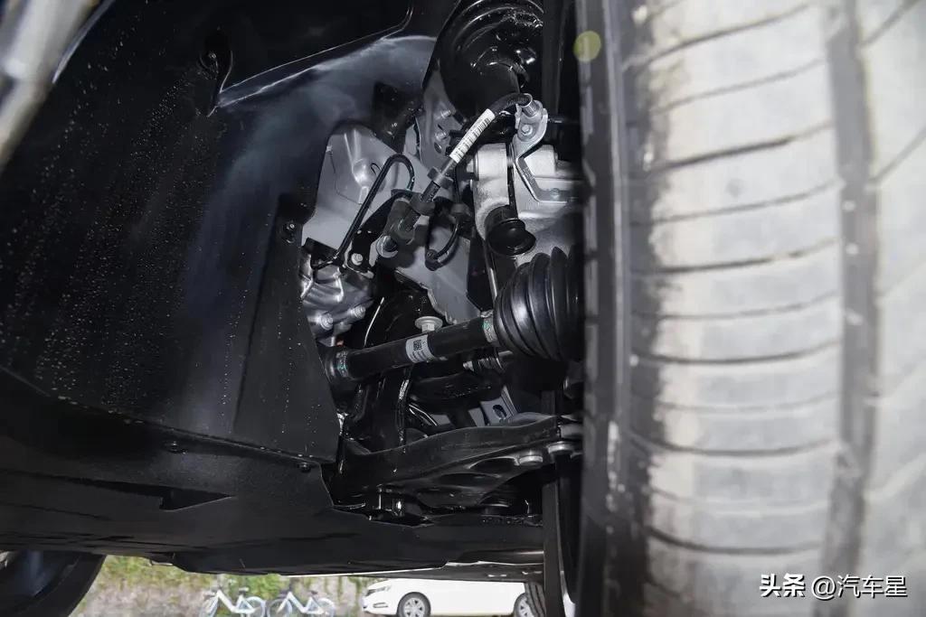 这台车配备的是19英寸的铝合金轮毂,原厂轮胎品牌是佳通,胎面凹槽比较深,并且排列密集有序,在行驶途中可以增加抓地力效果。