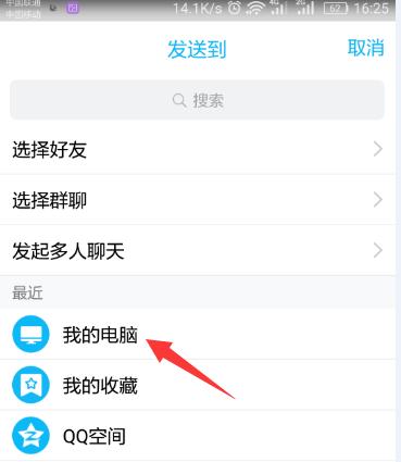 点击分享给好友,并在电脑上登录qq,点分享到 我的电脑