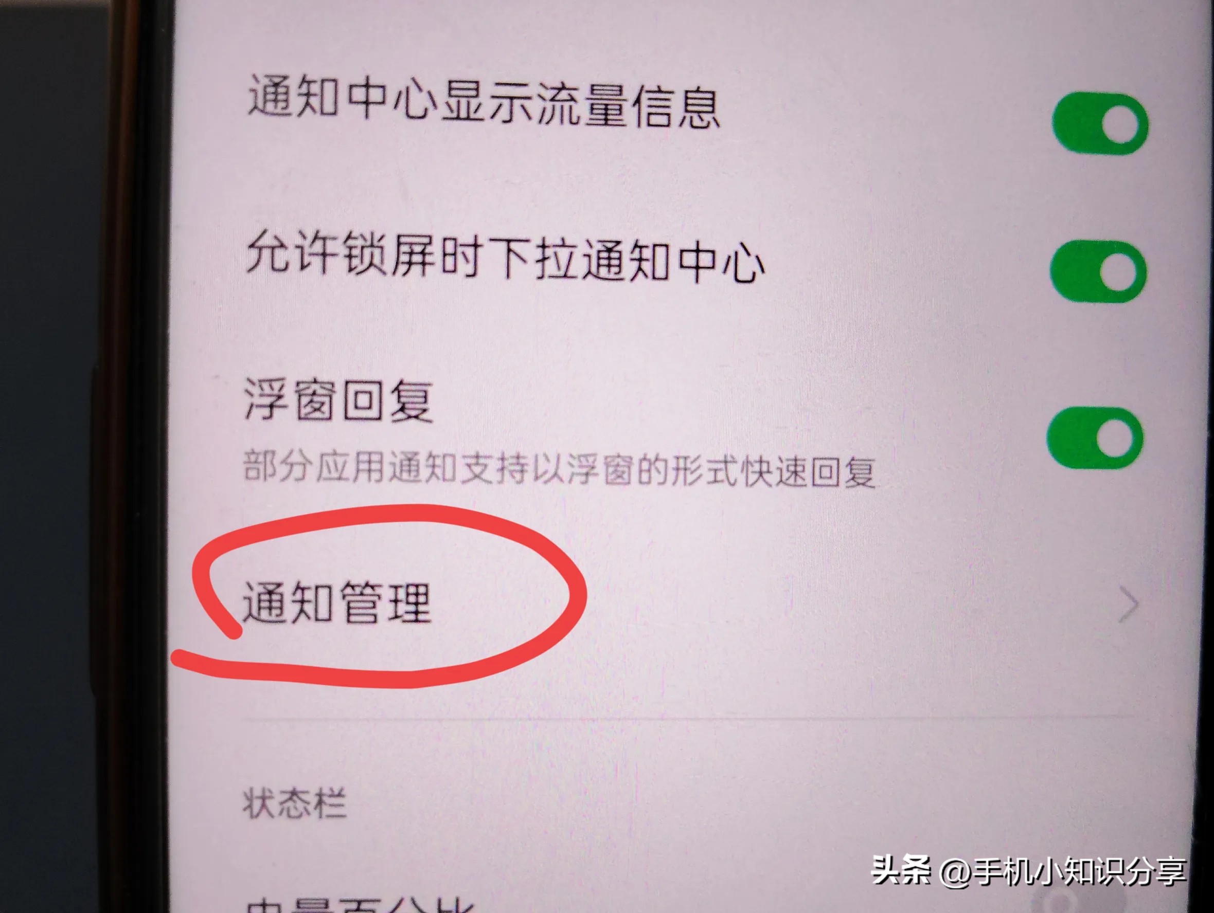 接着找到通知与状态栏,然后打开,(如上图所示)