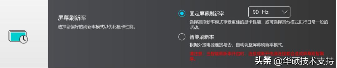 智能刷新率:依照外部电源连接与否,自动调整屏幕刷新率模式。