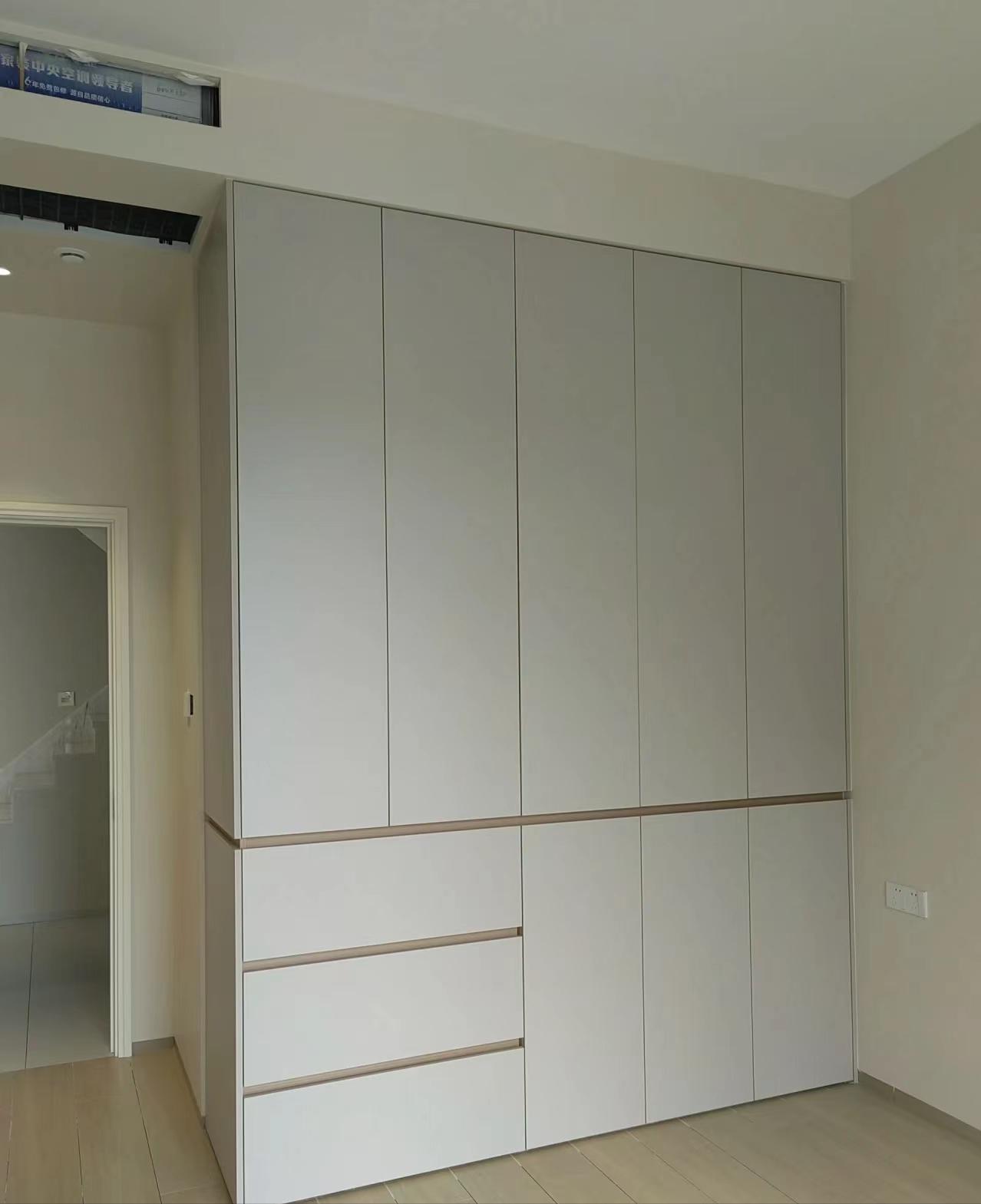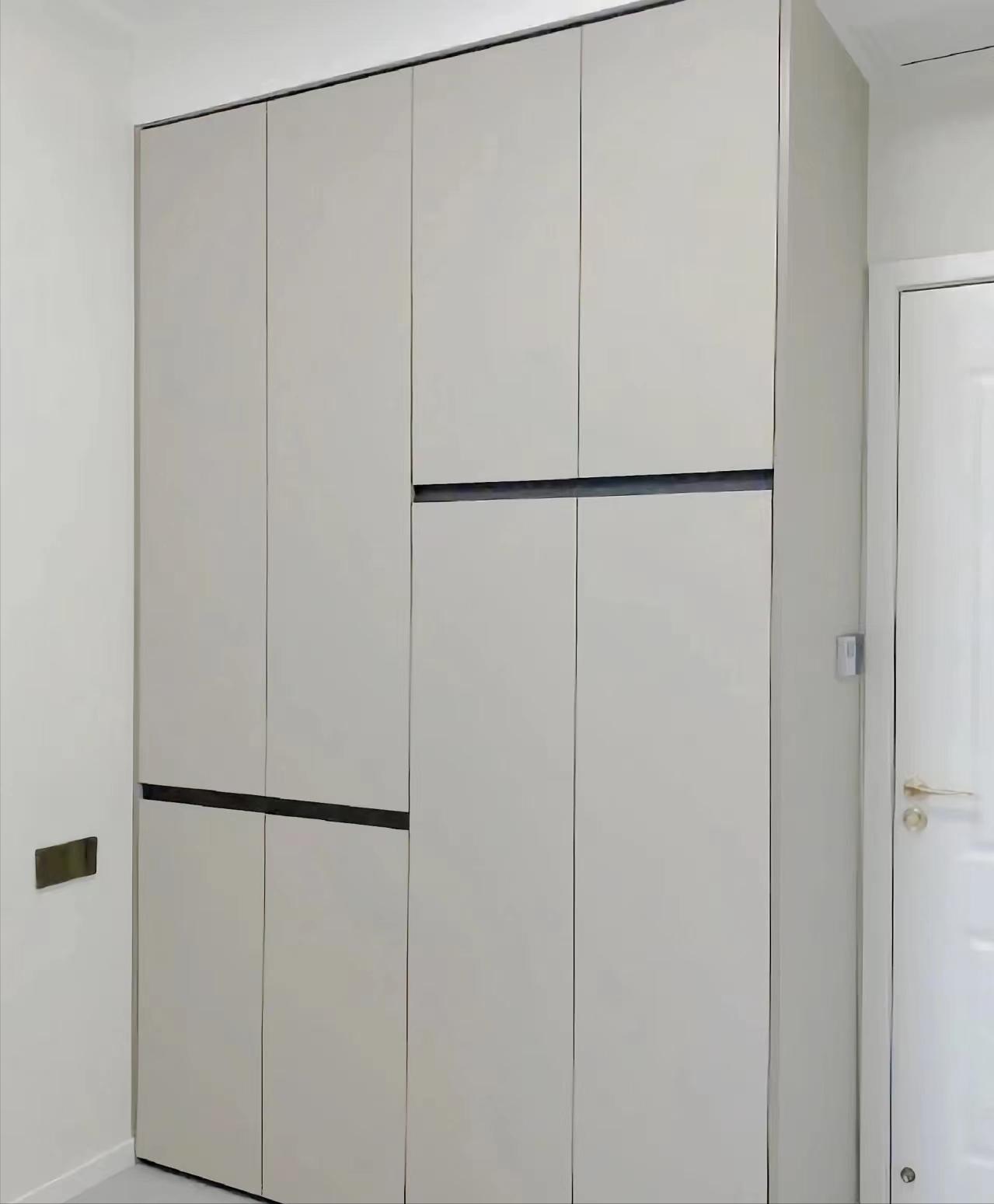 其实与一门到顶柜门对应的分割布局柜门也可以做的很好看,只是分割比例要确定好,变成黄金分割比例。