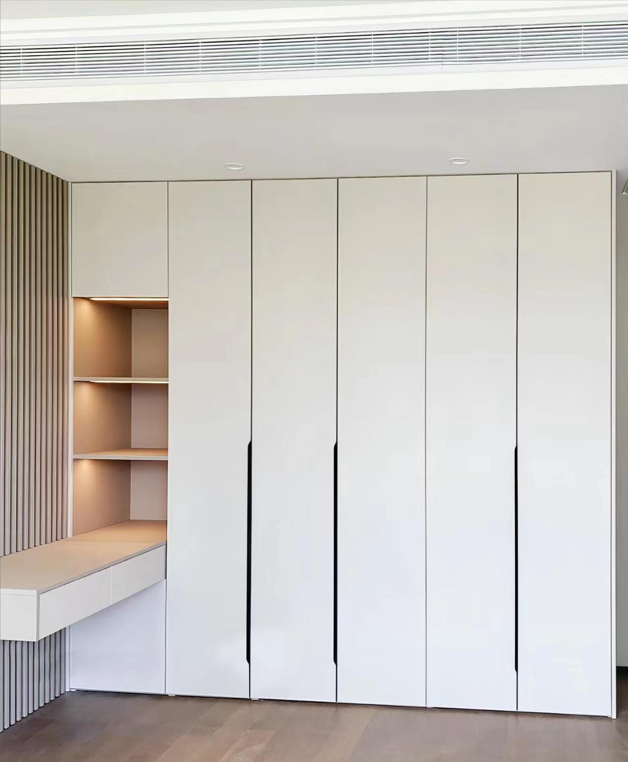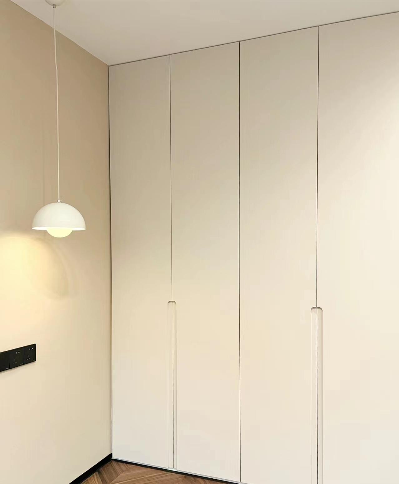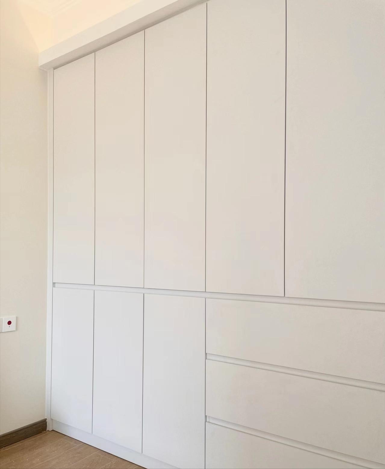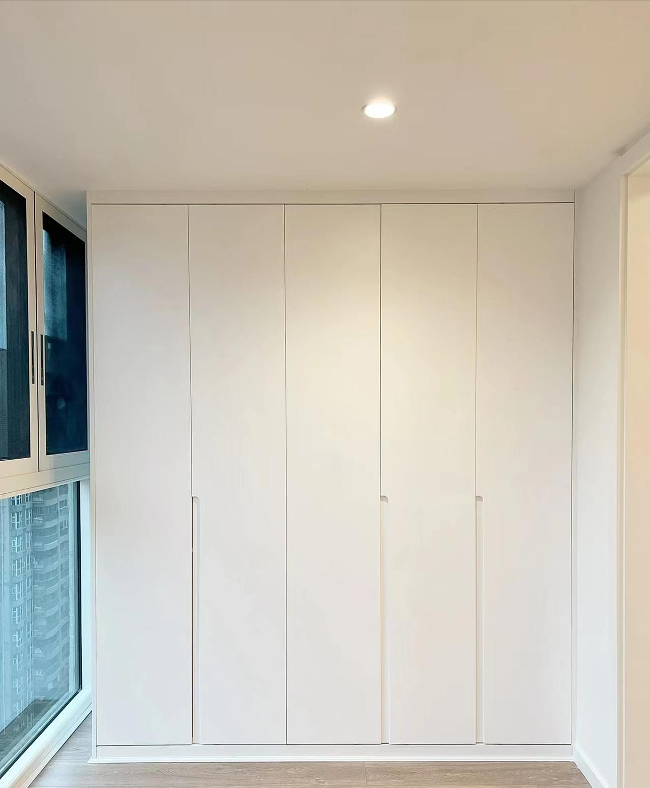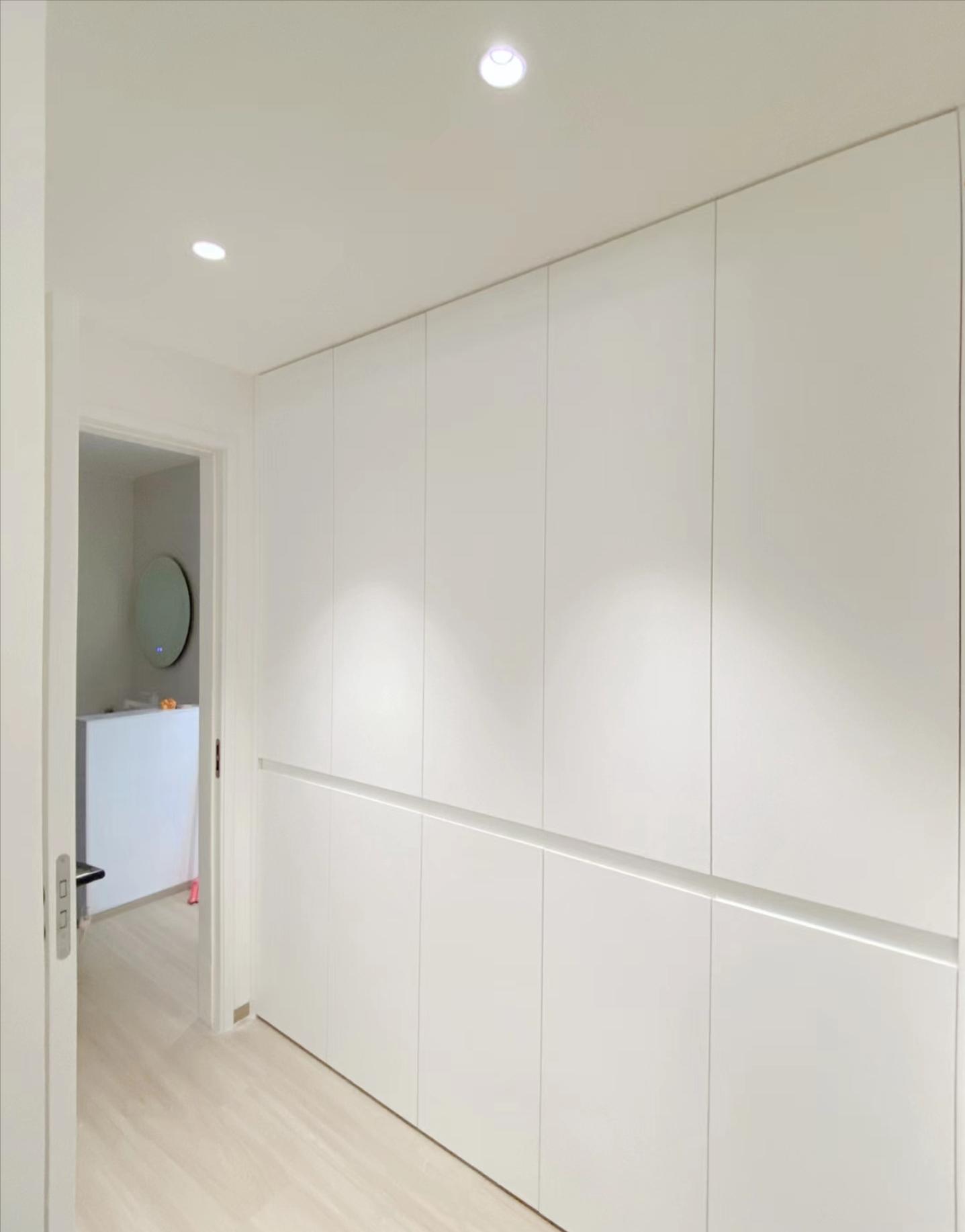 定制衣柜尽量选择凹位内嵌安装,这样室内空间更加整齐,能够起到扩大空间的作用。如果是L型位置可以通过砌薄砖墙或假墙来实现内嵌安装定制衣柜,效果会更加好。
