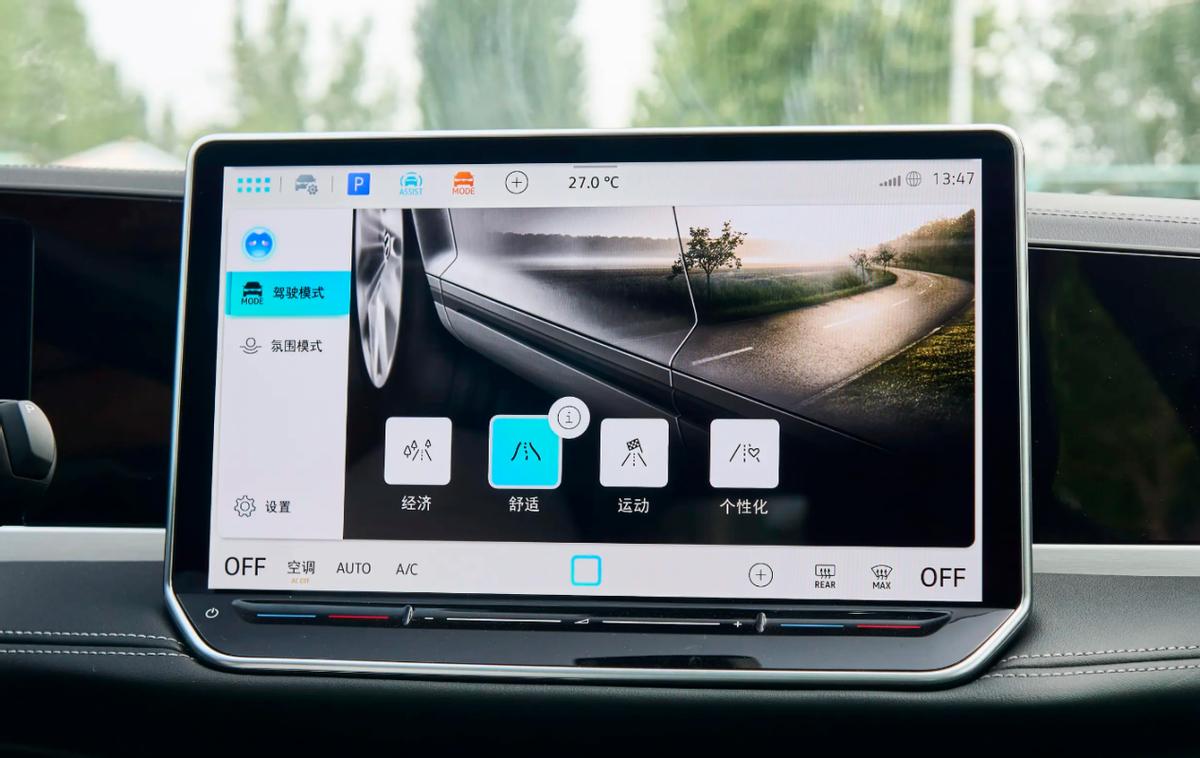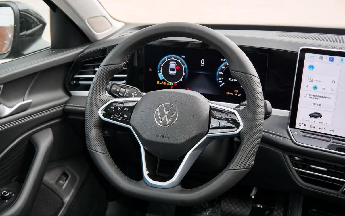三幅式多功能方向盘继承了扎实饱满的手感特征,但原来的机械换挡杆升级为电子怀挡,操作起来比较顺手,但对于大众老车主来说,需要时间去适应。另外,新车仅保留了启动按键和电子手刹两个实体按键,其余的功能按键都整合到了中控屏,操作起来会比较繁琐,也需要适应。至于车机交互体验,新UI界面看起来简洁清爽,功能分区布局也很明了,但在没有骁龙8155芯片加持的条件下,流畅度还是明显差一些的。