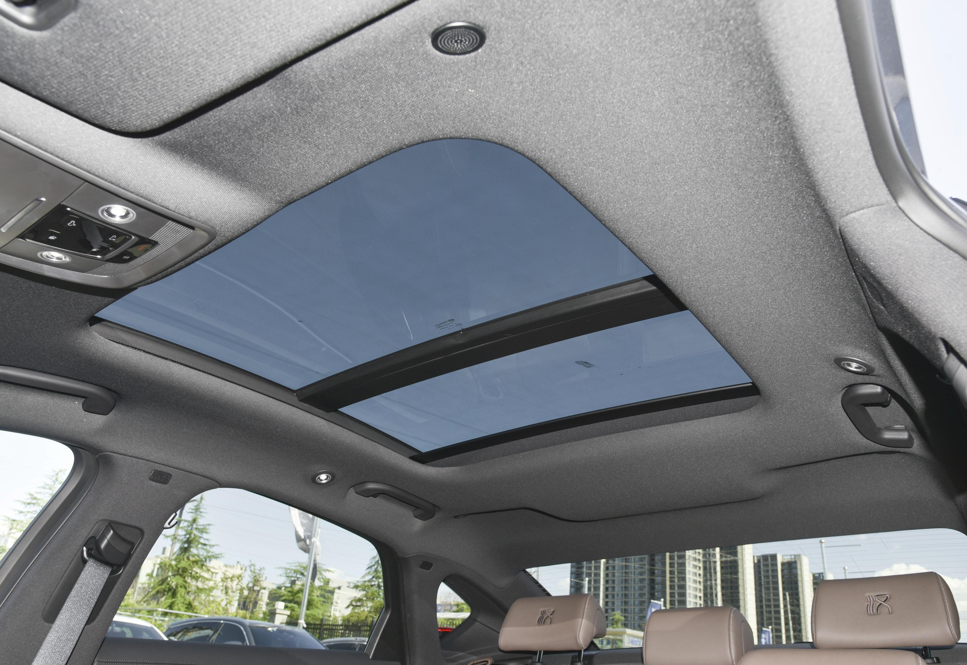 全系标配可开启的分段式电动防夹全景天窗。