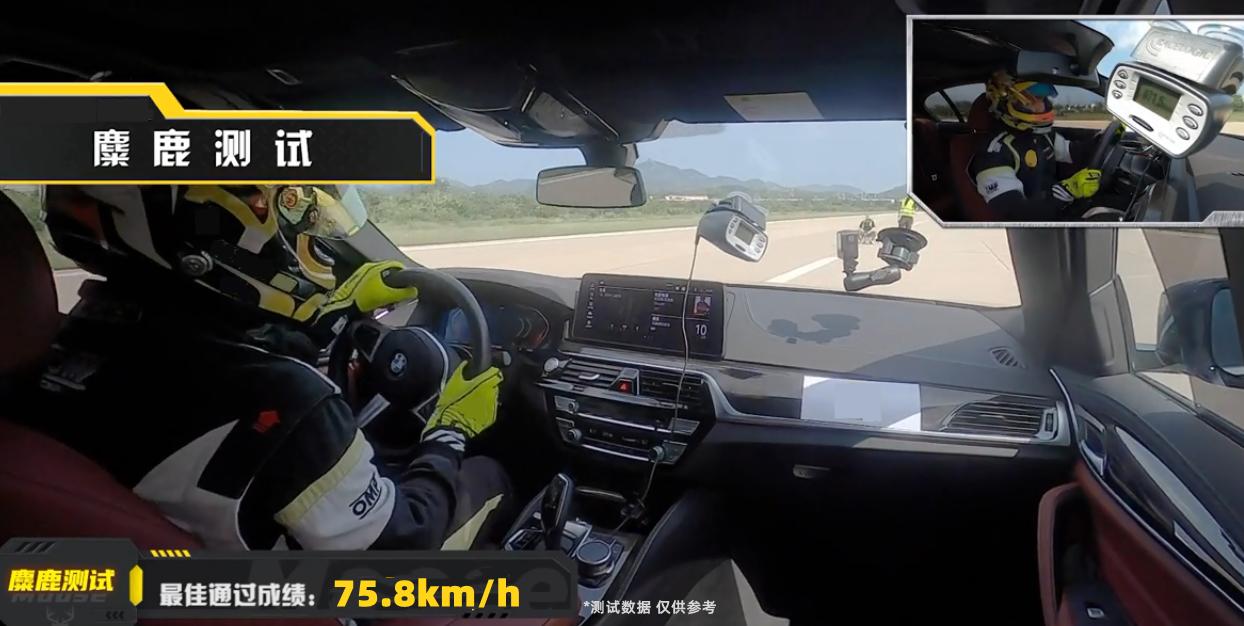 为了更为深入了解悬架的功能特性,我们来看看搭载了该悬架系统的车子在麋鹿测试中的表现,其中测试场景采用了IS03888-2标准。