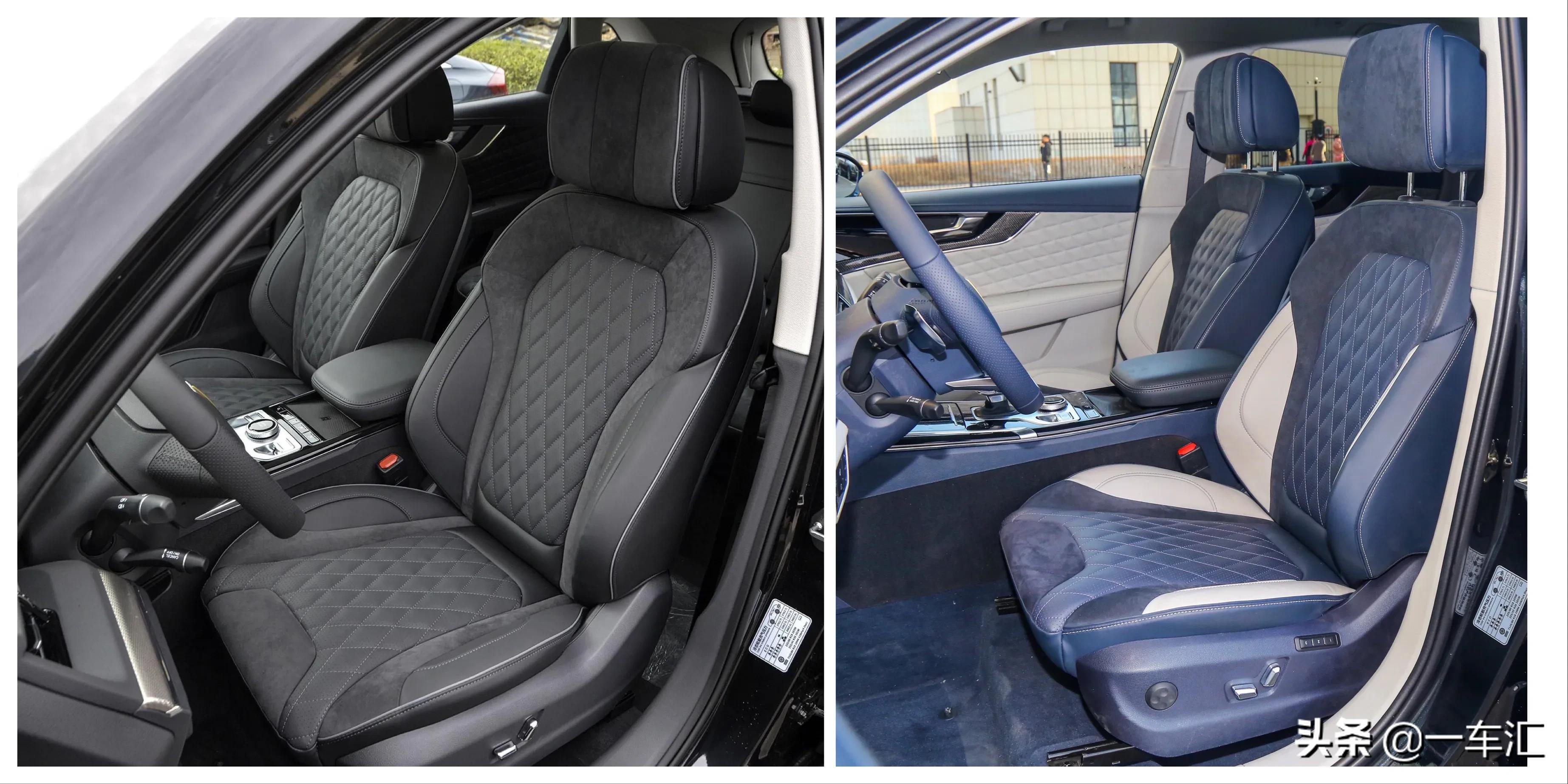 全系车内座椅表面均为皮质拼接,颜色与内饰风格照应,坐垫和靠背中间的菱形纹路看起来更有档次感;座椅造型宽大饱满,具有相当不错的包裹性与侧向承托。智联旗悦版前排主副驾驶位均支持电动调节;两款智联旗享版车型增加前排座椅加热、通风,以及主副驾驶位4向腰部支撑;两款智联旗领版车型再增加主驾驶位座椅记忆。