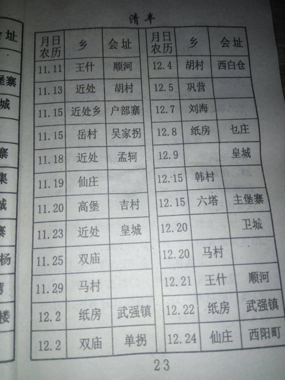 仙庄: 农历五、十集会马村:农历二、四、八集会