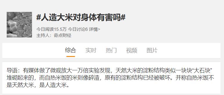 最近有媒体报道,市面上的自热米饭使用的原来不是真的大米,而是经过加工的人造大米,甚至还有传言说,厂家之所以使用人造大米,就是为了降低成本,这不免引起了大家的担心,人造大米对身体会有危害吗?