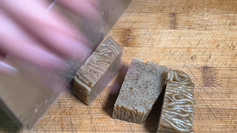 1. 一块皮渣,用刀切成长方形厚块