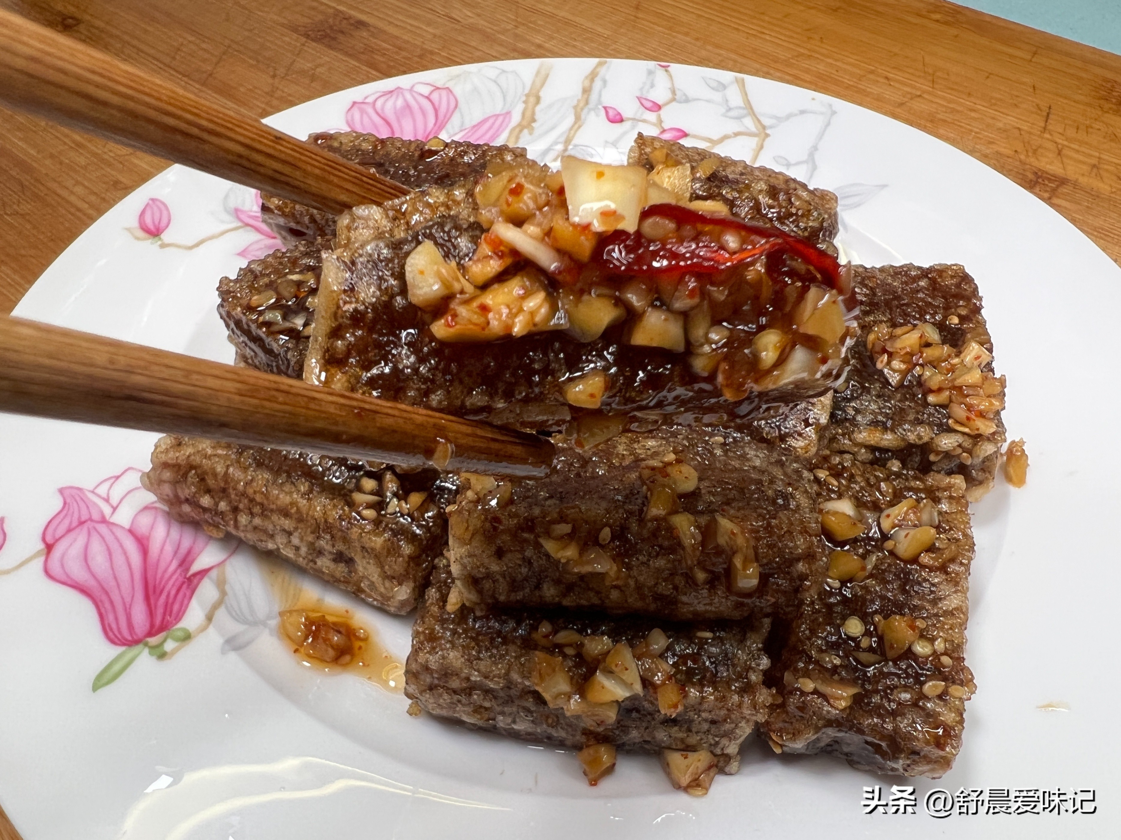 皮渣的新吃法来啦,煎一煎,再淋上凉拌汁,蒜香浓郁,好吃好做