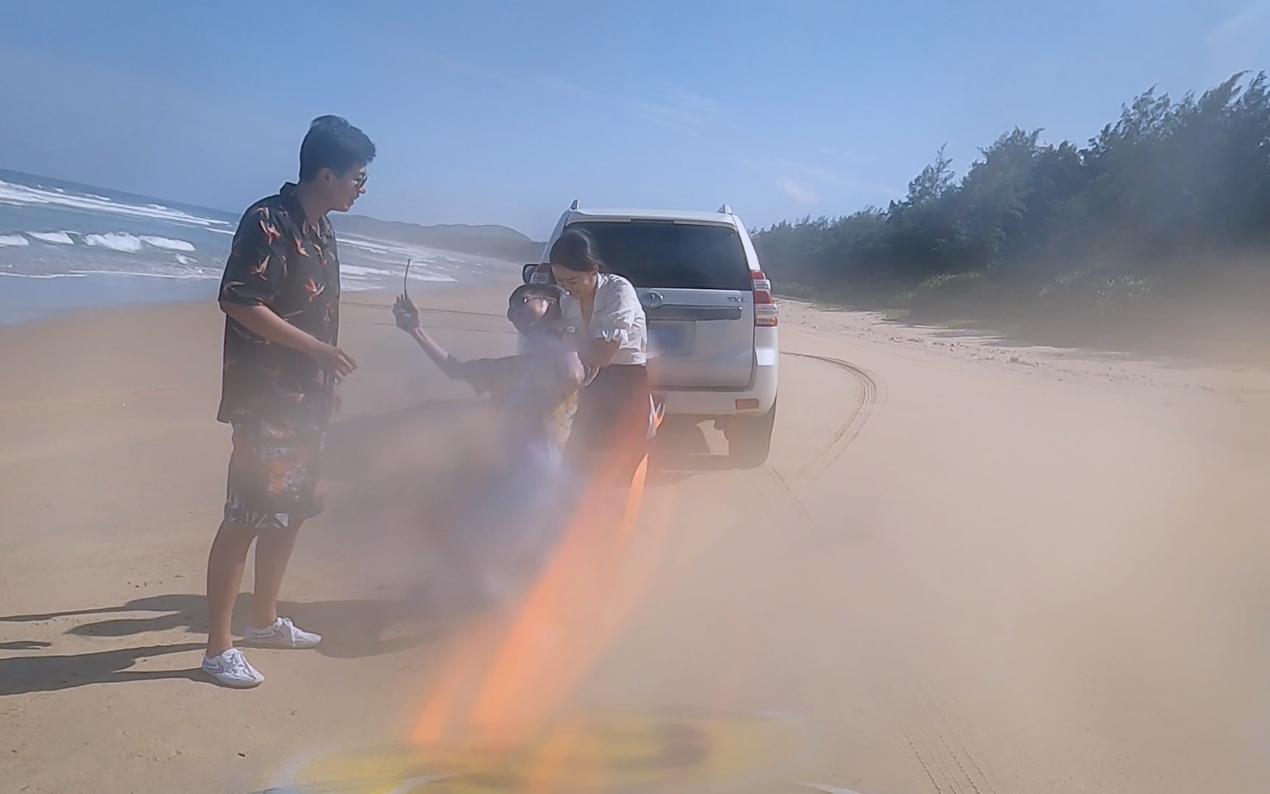 然而理想总是很美好,现实却很骨感。志明开着雷凌刚踏入沙滩半步便惨遭陷车,毕竟雷凌不是越野车,没有较高的离地间隙也没有四驱,趴窝在沙滩上是难免的,挖了半天之后还是若然开着越野保障车拖着雷凌双擎完成了带美懿乘车冲浪的项目。
