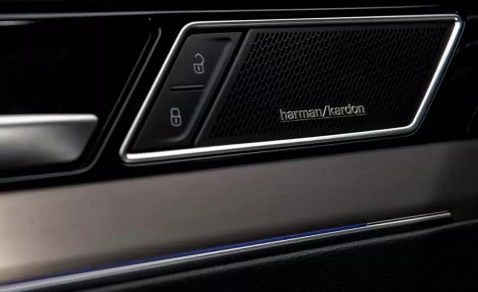 在门板上,只有纵行版配置了全系独有的哈曼卡顿音响,12喇叭、16声道、四种音效选择,再搭配30色内饰氛围灯的调节,能增加一点点乐趣。这款车的金属门板通过自身重量再搭配上铰链的阻尼后,推拉起来跟一般的车不一样,没有轻飘飘的感觉。